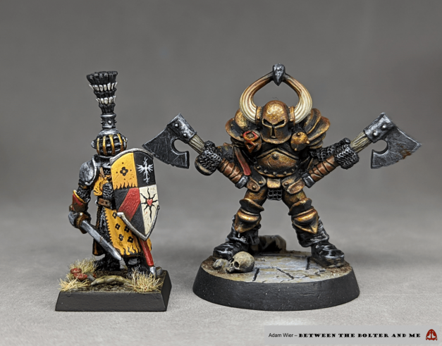 A google search on John Blanche’s Knight Panther painting brought me back to Between the Bolter and Me. Love the freehand. So great!