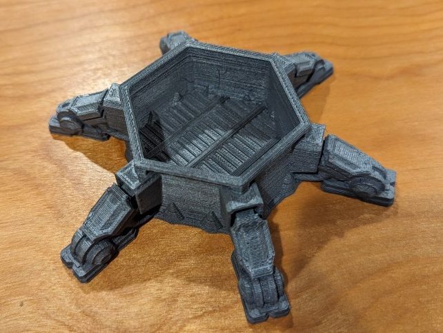 I had a partial print failure on the tri-wall element. I kept it, I think it looks cool. I was going to paint it like battle damage, but haven’t yet. Maybe some day…