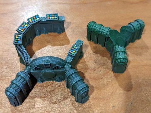 Also check out Cursed City Terrain. One of the keystone differences between Blackstone Fortress and other Warhammer Quest game family is that combat employs cover. To indicate cover, lines are printed on the game tiles. Here’s a video that explains it. The gentleman in the video is non-coincidentally the designer of most of the terrain that I use. I REALLY like using the terrain. Without it, I guarantee I would forget about cover effects every single time. I really need those vertical elements for me to notice them. I haven’t inventoried every single tile so there may be an enormous map that requires more terrain than I have. I’ll deal with that if it comes up. Me – 2023 The tiles have three themes: tessellating geometrics, rocky crystals, and sci-fi elements. I’m not particular about when I use them, and many are tile-specific. There are also some blocking hex elements…