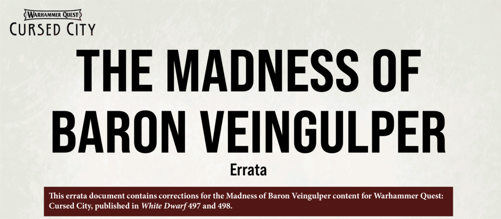Attention everyone! Stop what you’re doing and read the eratta from Games Workshop, fixing the errors with The Madness of Baron Veingulper.