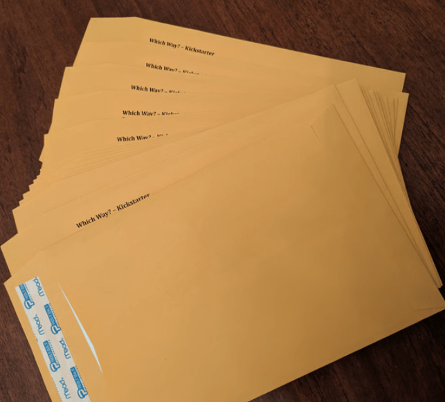 Shipping is also on your own. The backer survey will include mailing addresses if you ask for them, you can then write, print, mail merge, etc. the addresses. I wasn’t sure how I was going to mail stuff out. I ended up doing a mail merge with Microsoft Word and printing the labels directly onto envelopes. The only hiccup was a ZIP code with a leading zero. Excel/Word deleted the leading zero so I had to write it in by hand in the post office. So keep an eye out for those!