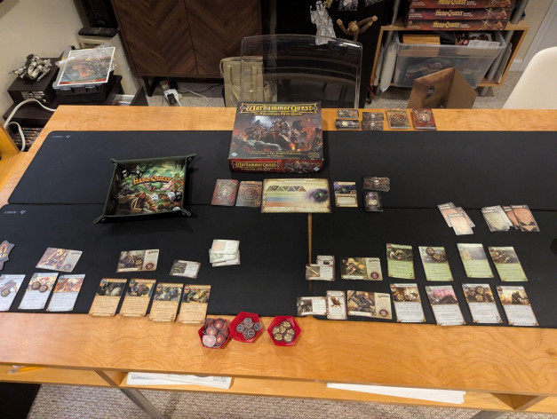 Warhammer Quest: The Adventure Card Game It’s a ten year old game that only had two official player expansions. It’s kind of a hairball to learn but we’re getting the hang of it. The biggest things to remember are that: